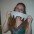 Notice the hand holding her uncooperative dogness in position.